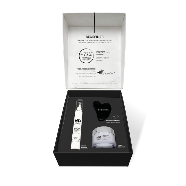HD Redefiner Exclusive Pack es un tratamiento antiedad global de día y noche, formulado para redefinir, reafirmar y atenuar los signos de la edad en rostro, cuello y contorno de ojos. Este pack incluye dos productos de la gama Redefiner más una Piedra Gua Sha para potenciar los resultados.