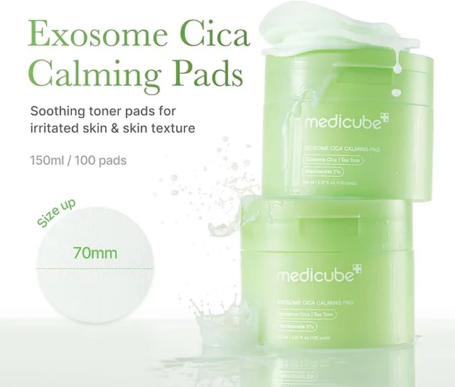 MEDICUBE Exosome Cica Pad son discos ultra-calmantes diseñados para proporcionar un alivio inmediato a la piel irritada y sensible. Gracias a su avanzada tecnología de exosomas, los activos penetran de forma más eficaz, contribuyendo a reducir el enrojecimiento y a fortalecer la barrera cutánea. Es la solución práctica y rápida para reequilibrar la piel tras las agresiones diarias.